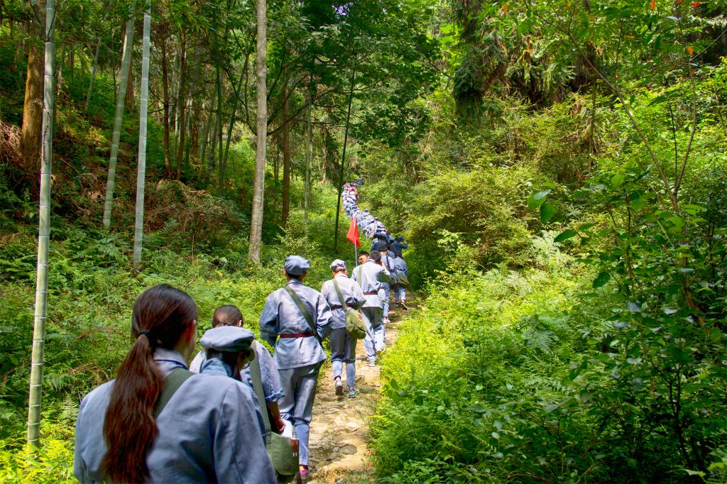 本网讯(通讯员马霞丽)8月24日,金年会jinnianhuicom“小苹果”青媒中心社会实践团成员身着红军军装,在全国青少年井冈山革命传统教育基地的组织下,与全国其它21所高校团队一起来到朱毛挑粮小道,重温井冈山革命斗争时期生活情景,感受老一辈无产阶级革命家身先士卒、率先垂范的高风亮节,体会井冈山精神。