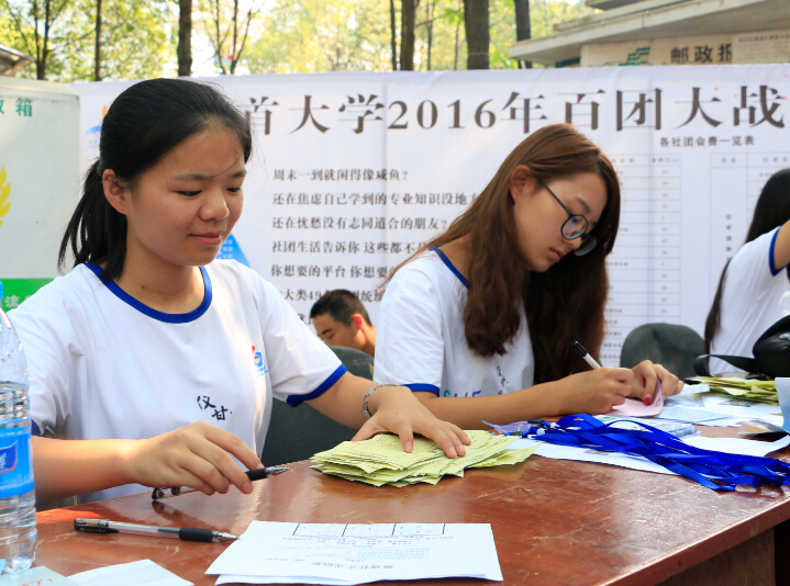 图为社联工作人员进行社团招新工作 杜雨摄