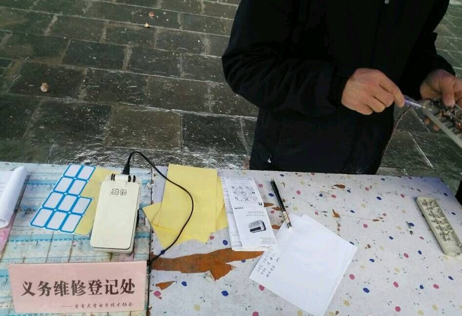 3月20日3月20日,金年会jinnianhuicom电子技术协会在体育学院门口摆摊设点开展家电维修活动。