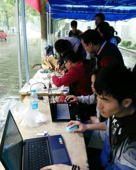 清晨,电子技术协会的成员们早早的来到体育学院门口布置场地,搬桌子,搭帐篷,忙得不亦乐乎。拉横幅,摆桌子~正式开始工作啦期待已久的一年一度家电义务维修即将开始,工作人员的脸上洋溢着兴奋。